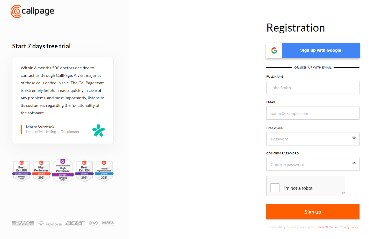CallPage is a system which can be installed on every website. CallPage algorithms analyze behaviors of users on your website (time spent and frequency of visits). When the system discovers a potential client, it displays a pop-up window offering a free call from customer service in your company.