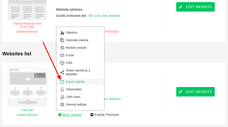 You can easily export your website to an external server in just a few steps.