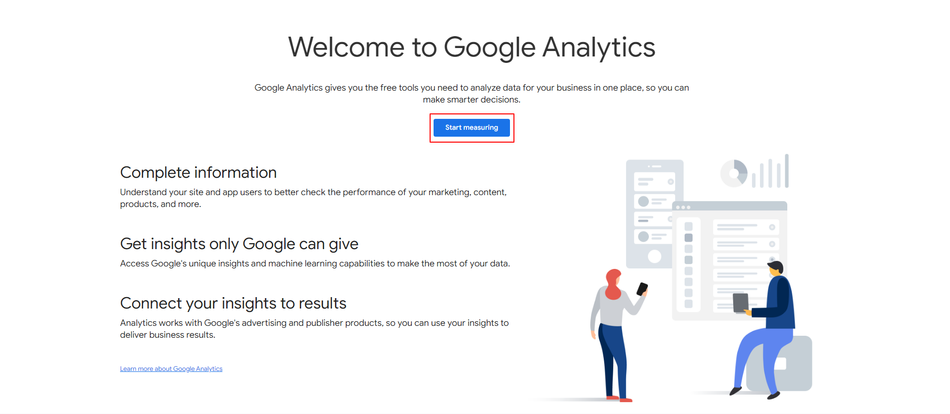 If you don't have a Google Analytics account yet, you need to create one first. To do this, go to the main Google Analytics page and click "Get started today."