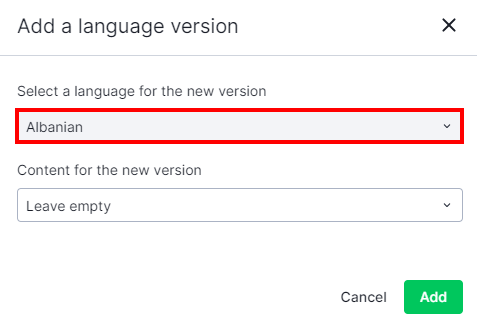 By selecting an "Copy content from another version" option (1), a new language version will be created as a copy of chosen language version (2). What remains to do is to translate its content into another language.