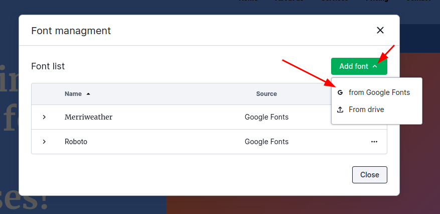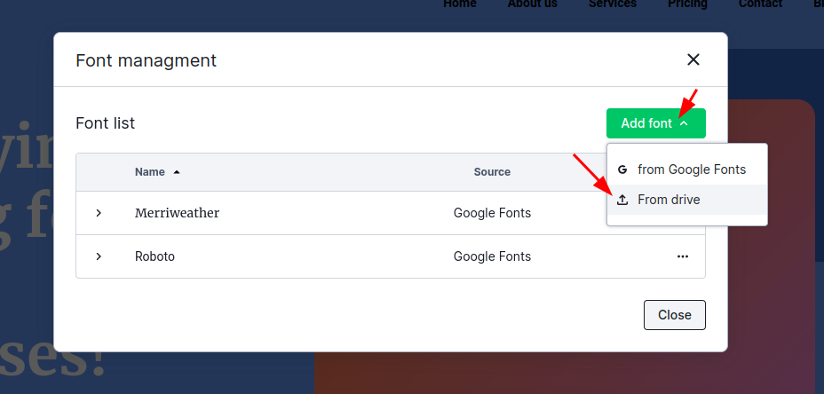 Did you know that in Webwave you can also add your own fonts, not related to Google Fonts? All you need is a font in one of 4 formats: .ttf .woff .woff2 or .otf