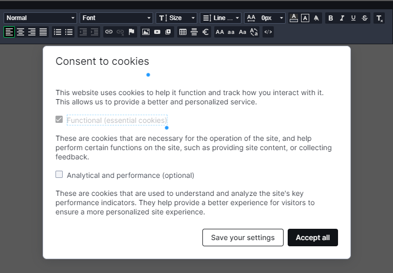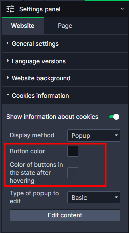 It's a good practice to inform visitors that your website uses Cookies. In Webwave - white label website builder with no coding - you can easily add a Cookies notification to appear at the top or bottom of your website or you can turn it off completely.