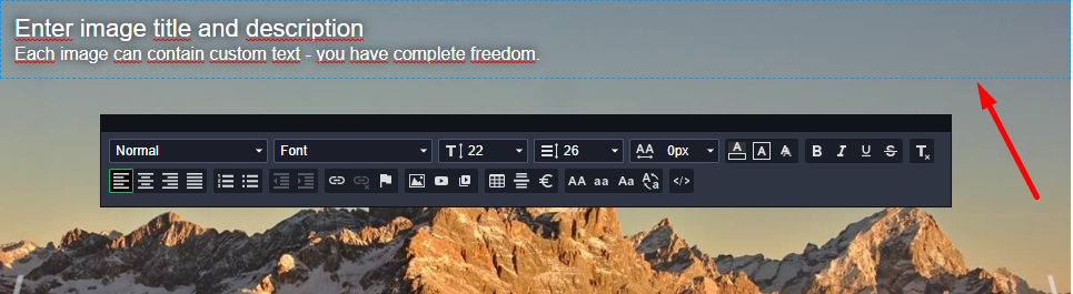 There will be added some default photos in the gallery . You can easily change them in the "Change images" section.