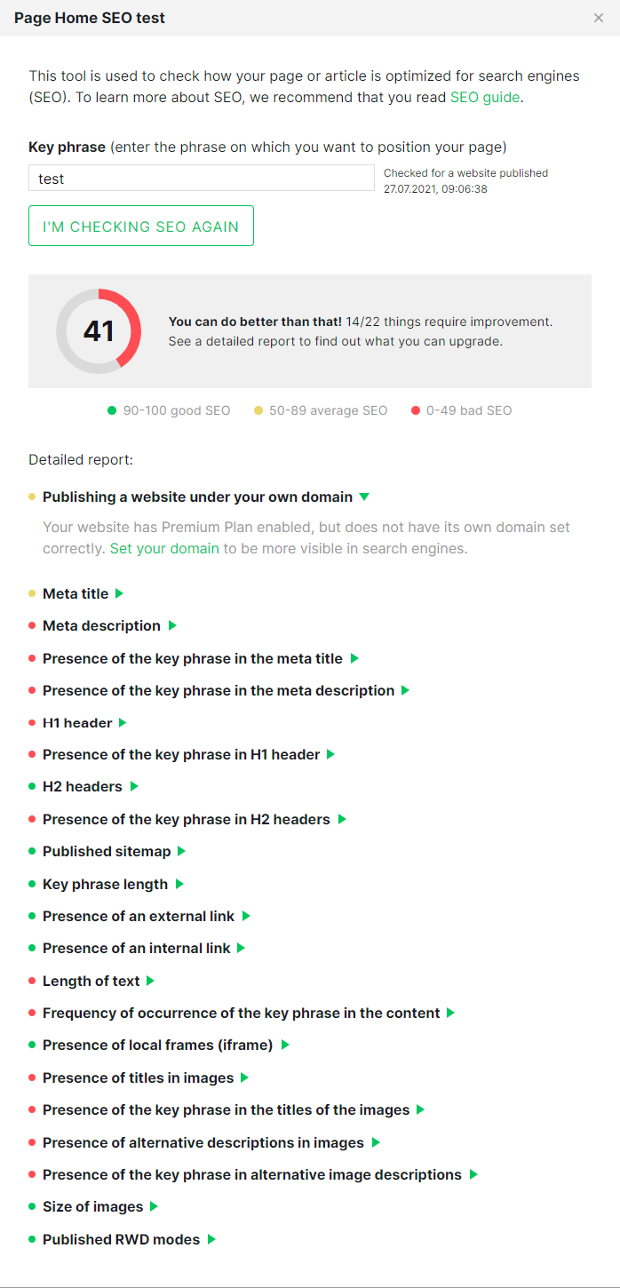 Keep in mind that each subpage has a separate SEO. To achieve the best results, scan all the subpages with WebWave SEO analyzer.