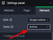 State active - a state of the linked subpage which is currently open. In order to edit this state, select in the Settings panel "State: Active" and adjust style and content.