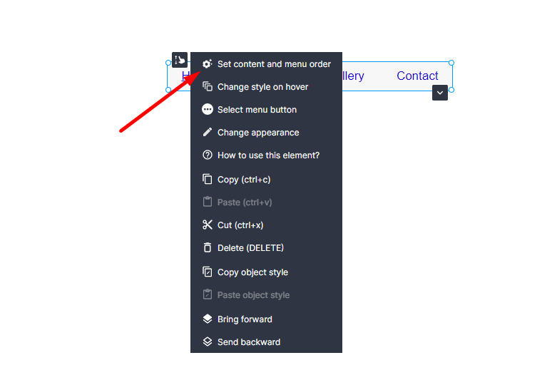 To change menu type in WebWave website builder, select in the element edition panel "Menu type" and choose amongst horizontal, vertical and mobile. The direction of menu rollout you may select in the "Submenu" tab.
