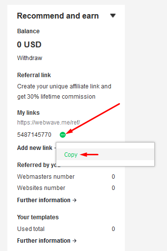 Partnership programme in Webwave has been created in a way so that you can earn money not only from payments made by directly recommended user, but also from second line recommendations. Commission then is 20%.
